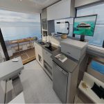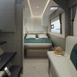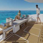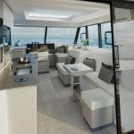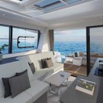 With a completely new outside & inside design, it’s important to mention sportive and elegant lines which keep the DNA of Fountaine Pajot catamarans, multifunction cockpit with sunbath cushions, saloon with natural lighting from side and roof windows and big aft platform as prolongement of the cockpit.